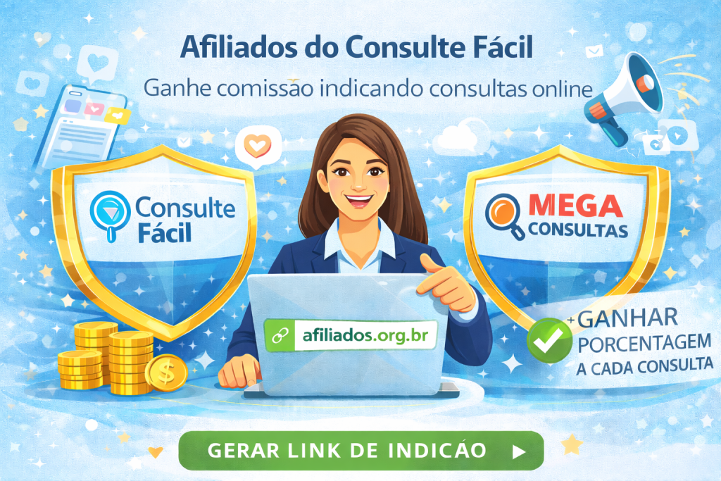 Basta acessar afiliados.org.br, escolher se deseja divulgar o Consulte Fácil ou o Mega Consultas, gerar seu link exclusivo e começar a divulgar.